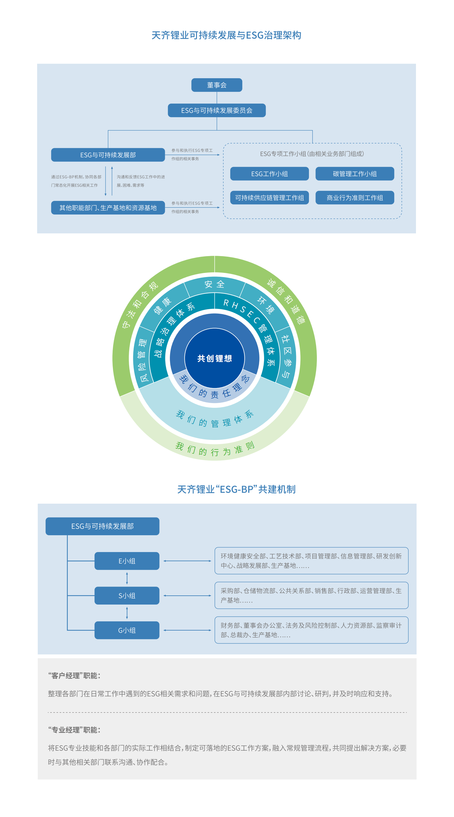 治理:天齐锂业建立了权责完善,分工清晰的ESG治理架构,董事会是公司ESG治理的最高责任机构,并由ESG与可持续发展委员会负责制定ESG与可持续发展愿景,目标及策略,ESG与可持续发展委员会每年至少举行一次会议,就ESG相关议题与董事沟通,专职ESG与可持续发展部负责执行落地,部门现已建立 “ESG-BP”(ESG共建伙伴)机制,担负起为各职能部门,海内外生产基地落实ESG工作提供支持和服务重任,在生产运营和管理中推进可持续发展理念,战略:天齐锂业以 “夯实上游 成人羞羞视频软件下载,做强中游,渗透下游”战略为基础,逐一融入可持续发展的理念以及UN SDGs(联合国可持续发展目标),丰富公司绿色发展内涵,风险管理:天齐锂业建立了以风险防控为基础保障,以价值创造为内生驱动力,以责任品牌为外在影响力,将诚信合规视为基本运营准则的可持续发展模型,对风险管理,健康与安全,环境与社区融入等ESG重点议题建立内部规章制度,重点融入RHSEC(风险,健康与安全,环境及社区)的风险管理体系,指标和目标:天齐锂业根据高管负责部门的职能权属,设置了相应的定性与定量ESG绩效考核指标(涵盖环境,社会,治理三个维度,超过50项指标),实现高管薪酬与ESG指标挂钩比例100%,并保持对ESG绩效指标的实时追踪,在激励层面实现了ESG下沉,落实。